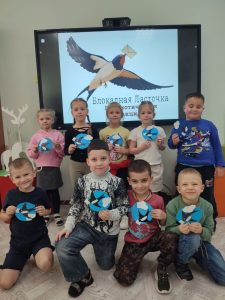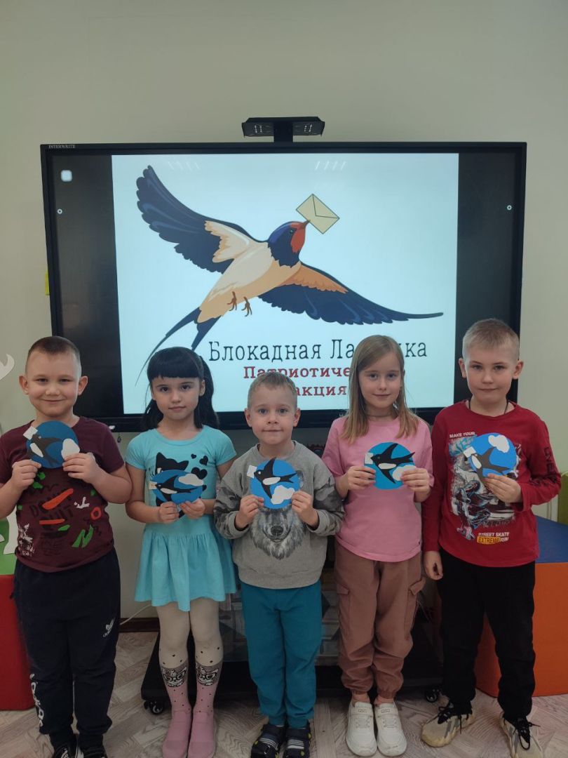 Обучающиеся объединения «Незнайка» под руководством Юлии Николаевны Фисенко, педагога ДО ЦДТ, приняли участие в патриотической акции «Блокадная ласточка». Под рассказы педагога о жизни блокадных дней в Ленинграде до освобождения города, дети оформляли аппликацию ласточки с письмом в клюве – символ добрых вестей с фронта.