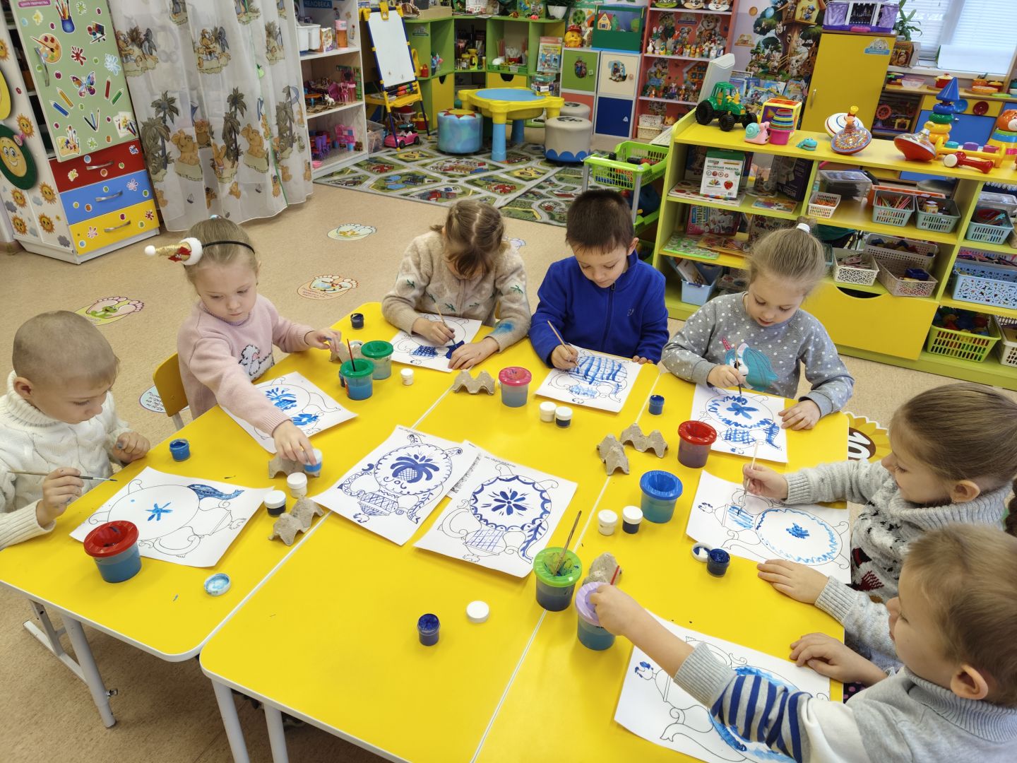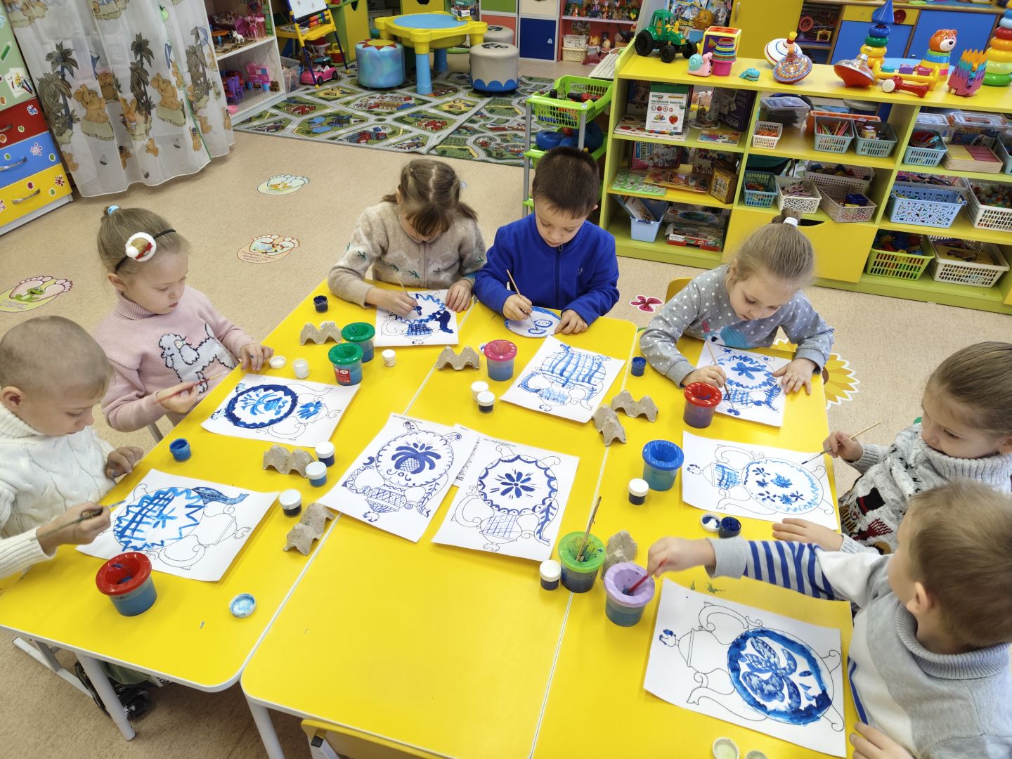 Наши занятия. Декоративное рисование «Гжель. Украшаем чайничек»