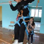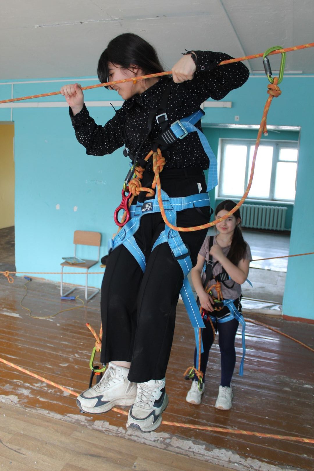 Каждый обучающийся под контролем преподавателя проверил своё снаряжение : правильность надевания страховочной системы, надёжность узлов, исправность карабинов.